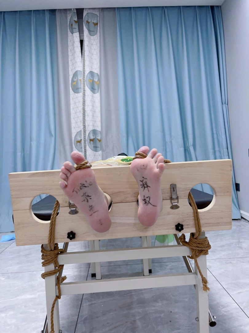 姿势:痒刑床+足枷(一定要固定脚趾)