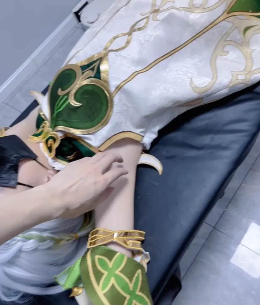 采访时只解开双手,脚底的按摩器会一直打开,茶茶需要在忍受足底挠痒的情况下回答问题~