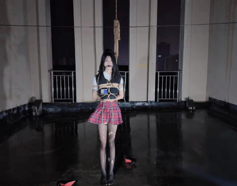 今晚的计划是天台吊缚强高,意外的是下雨了,打了两个外卖小哥的电话都不愿意送上天台,可以了他们的眼福,细高跟,单腿吊,悬空吊,空中口舌训练,其实最可怕的是单腿吊强高孤独放置,我也不知道他什么时候才会回来,反正放了好久好久好久,可以每次盼望回来的希望最终都是绝望的开始!!完事过后还是继续放置,淋雨到天亮。
