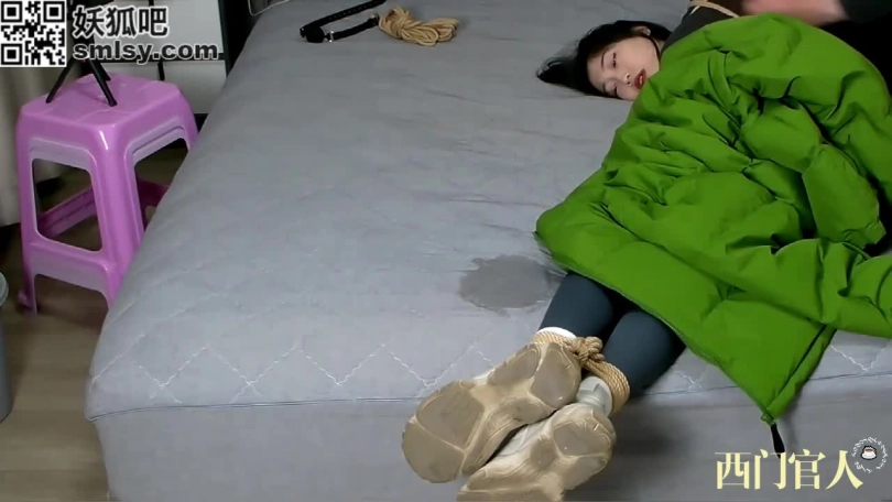 很好的诠释了床、人、绳之间三物的精彩,捆在床上的同时开着冷气裹着大衣,又冷又热,身上绳,口中球,驷马缚,接着拿出口球换上鞋子,裹上大衣呼吸不了一点,TK,挠痒,放置,挣扎,高跟应有尽有。