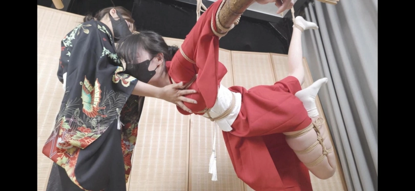 还是大家熟悉的模特嗷嗷和沉沉,她们的表现力大家应该都清楚,就不用多说了。服装选择的是岛国风格的和服,两位姑娘穿着和服视觉效果非常棒,沉沉的服装非常适合她,。嗷嗷非常有当S的潜力,表现力拉满,后续拍打沉沉那肥美的臀部时,沉沉被揍的都快叫破声了,挣扎弧度在大点是真担心她从桌子上摔下来,看样子嗷嗷是真下狠手啊,袖子都撸起来了,太坏了。视频分为两部分,两位模特都有互相调教对方的内容,也有都被绑起来的内容。拍摄时长从下午拍到晚上,剧本内容非常繁琐,需要拍摄的细节很多,工作室也是投入了大量的时间去完成,在满意的同时也感谢工作室以及模特带来一部精彩的作品~下面简单说一下剧情内容: