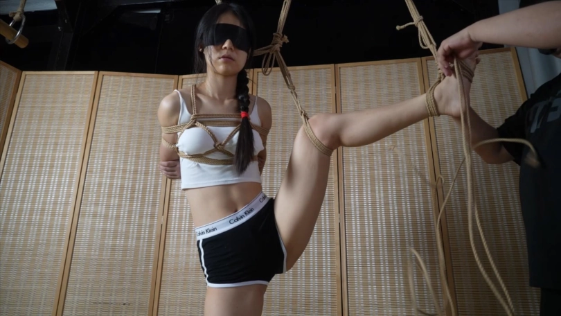 【象人】小柔-舞蹈生,单脚吊缚+驷马,开口器放置
