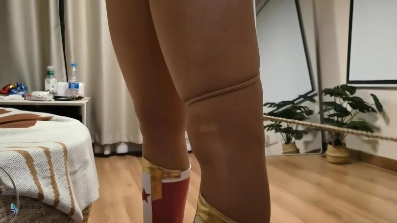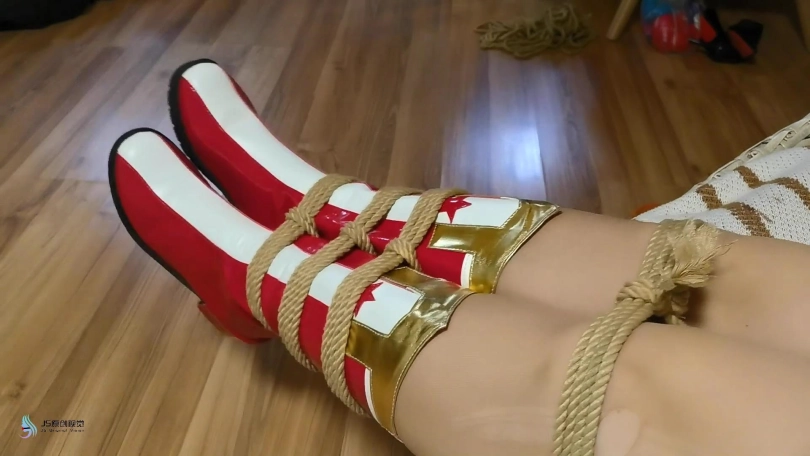此时女侠被绑成了一个驷马的姿势,TD的强力输出让女侠产生[X_X],这也消耗着女侠的体力,女侠不断的呻吟挣扎着,但她根本挣脱不掉绳子的束缚。而大家最后知道的就是,神奇女侠在这个房间神秘失踪了。。。