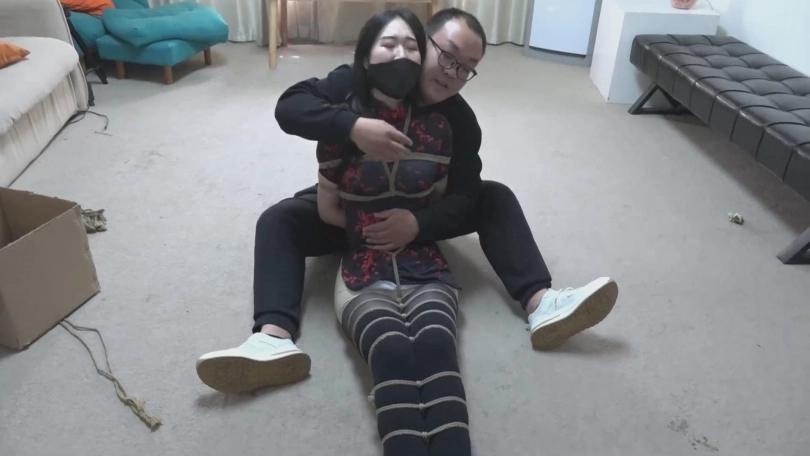 在把晓蕾套入丝袜袋彻底包裹确认无法逃脱之后,