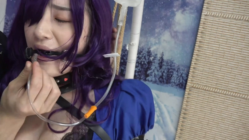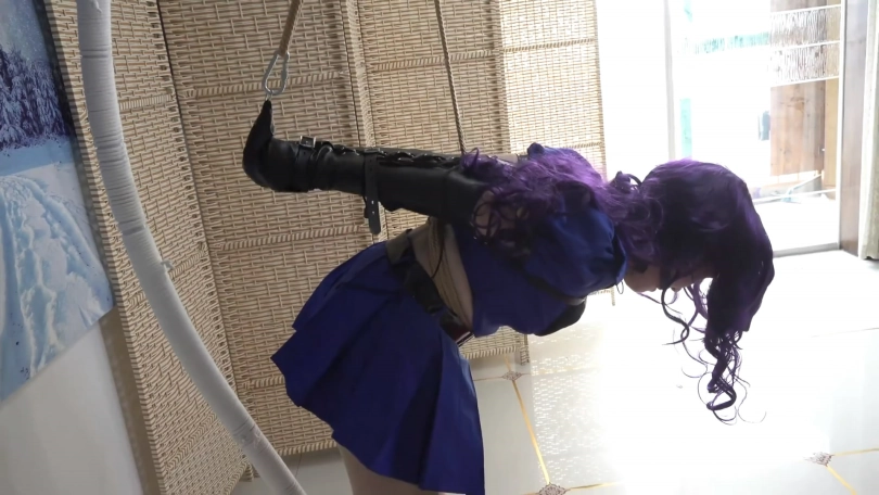 要点:爆乳,长靴丝袜,手铐脚镣加身,绳索吊绑单手套,眼罩口球,口水直流,强迫喝下自己的口水,最后紧缚逃脱