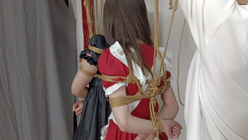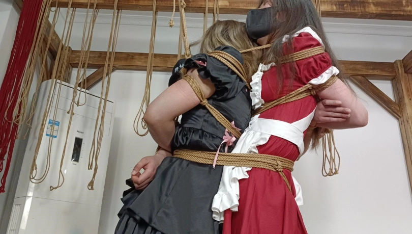 两人被紧紧的捆绑在一起会是什么感受呢?今天珺珺和楠楠被股绳紧紧的连在一起,股绳的牵扯使他们不能独善其身,一人动了另一人也只能跟着遭罪,本身就在垫脚和胳膊的紧缚之间抉择,脚底又被加上了指压板,两人只能有一人躲开指压板,但是股绳的牵扯使她们在相互躲闪之间只能更加的加重痛苦