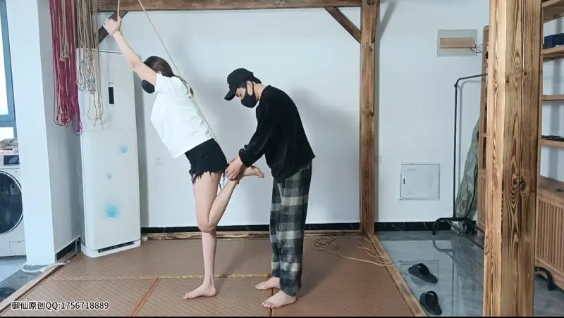 今天的珺珺犯错了,那么惩罚时刻就要来了,手脚用绳子连接在一起,要么吊手要么吊脚。还要挨鞭子,痛的珺珺满头都是大汗。不听话的下场就是这么的残忍。