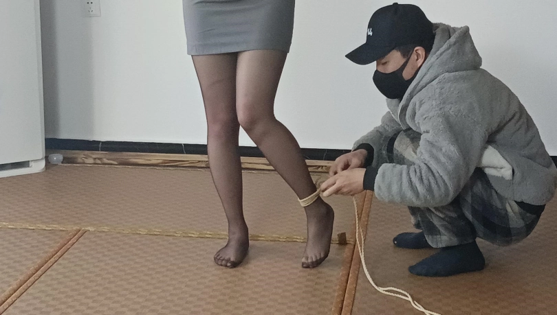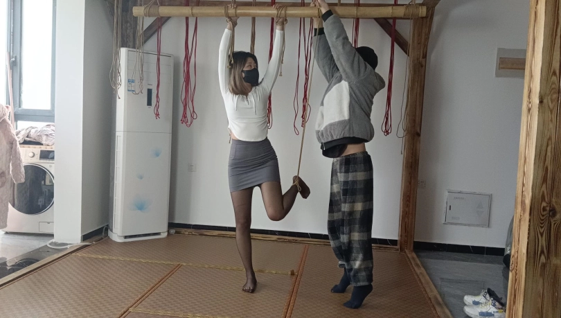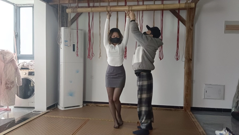 【秘语】黑丝包臀裙珺珺单脚吊缚打脚心,新模特琳琳第一次试镜(驷马,单脚吊,SP。新模特,双女)