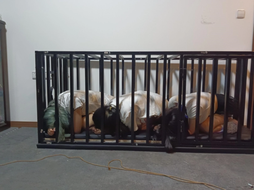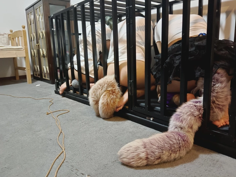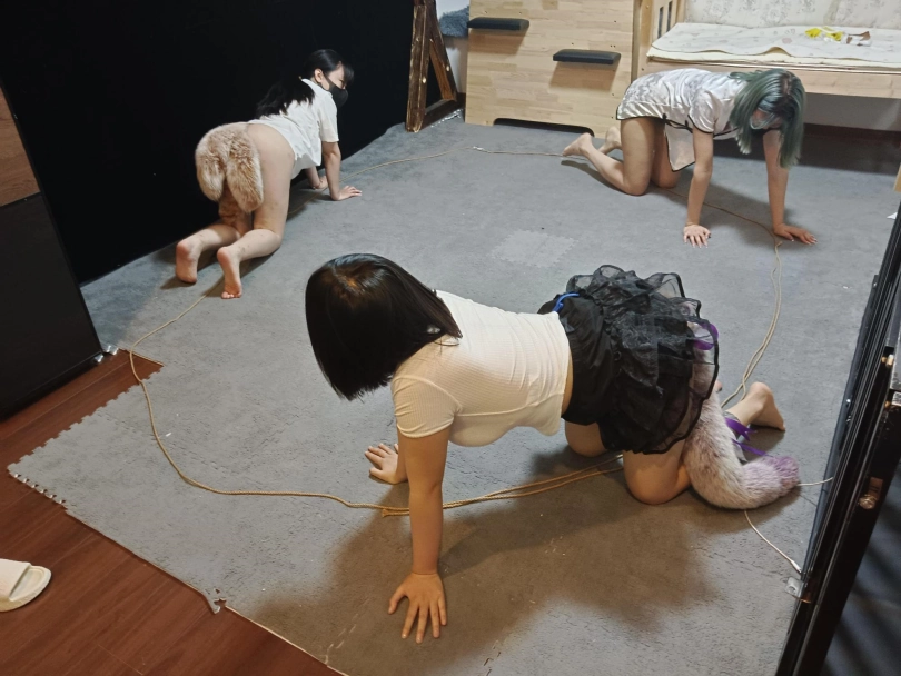 三个小狗排排做好,认真的完成每一项犬化训练任务,同时又教官严格的在把控,做的不好就会挨打,小狗们爬行一致,分别做好每一项动作标准,严格按照姿势标准来做!让我们来看看那些小狗做的更好呢?