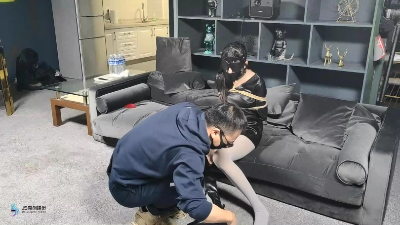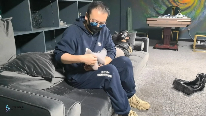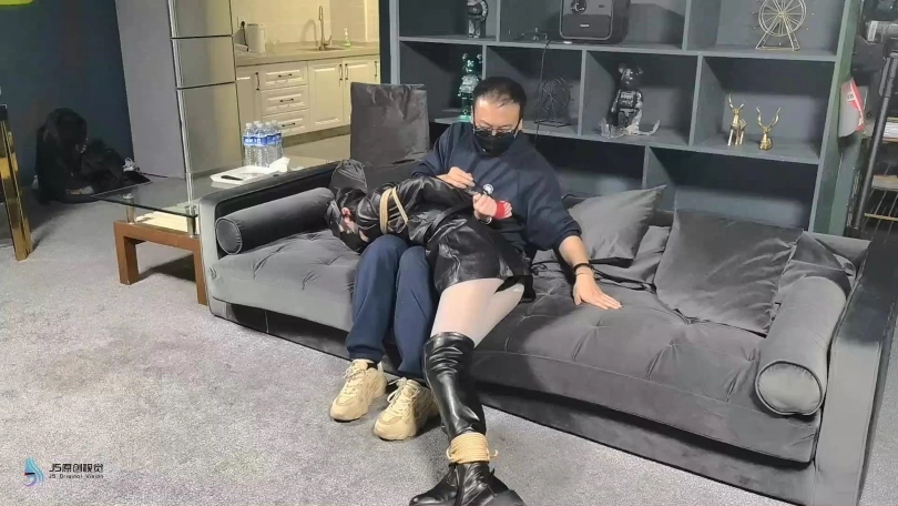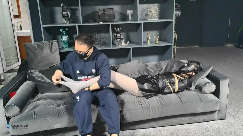 脱掉女老板的靴子,露出了一双穿着灰色连裤袜的美足,对方贪婪的亲吻,挠脚底,玩弄着女老板的美足。将她驷马捆绑起来,在不断的折磨下,女老板最终被迫答应签下了协议,将自己的公司低价转让了出去。