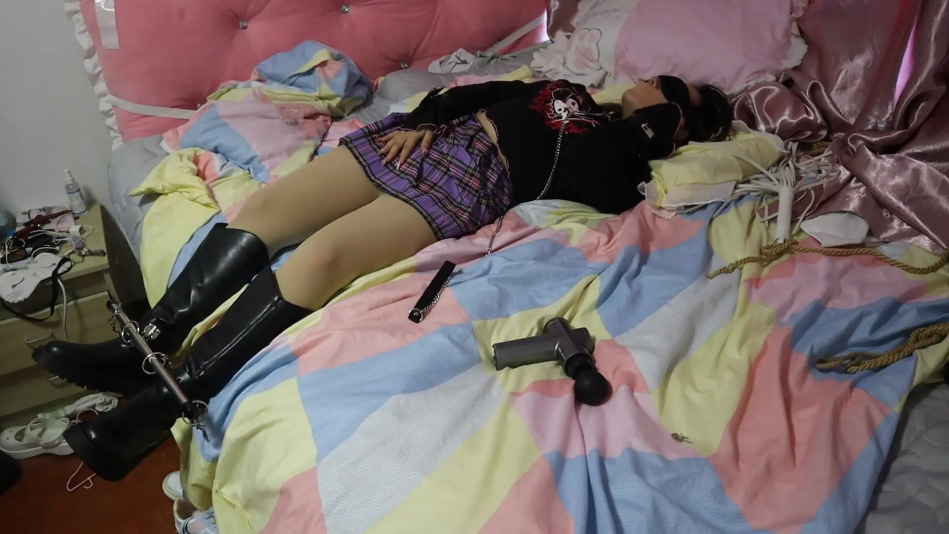 【荷仙】脚踩鞭挞被铐撩着的长筒靴少女的小脑袋,跪在床上瑟瑟发抖的呜咽着 别发抖,小姑娘 这只是开胃前菜呢 女孩:???呜呜呜(双视角的吓唬)
