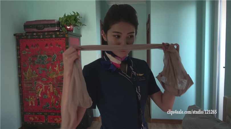 【K&M】空姐芮芮真空内裤脱丝袜自闻,让你帮我闻闻臭不臭