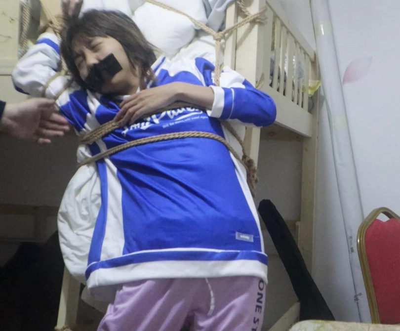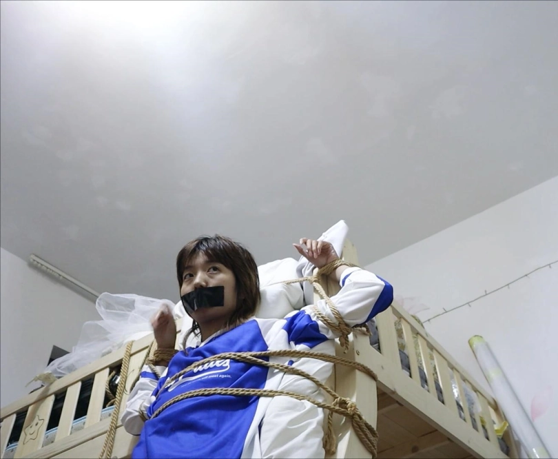 【荷仙少女】捕捉少女B本本逃脱绳子束缚中的微表情 绑在上下床楼梯中的多条绳子束缚 各种痛苦挣扎表情自己慢慢解开途中还要被男主各种侵袭 以及最后逃出生天的放松感