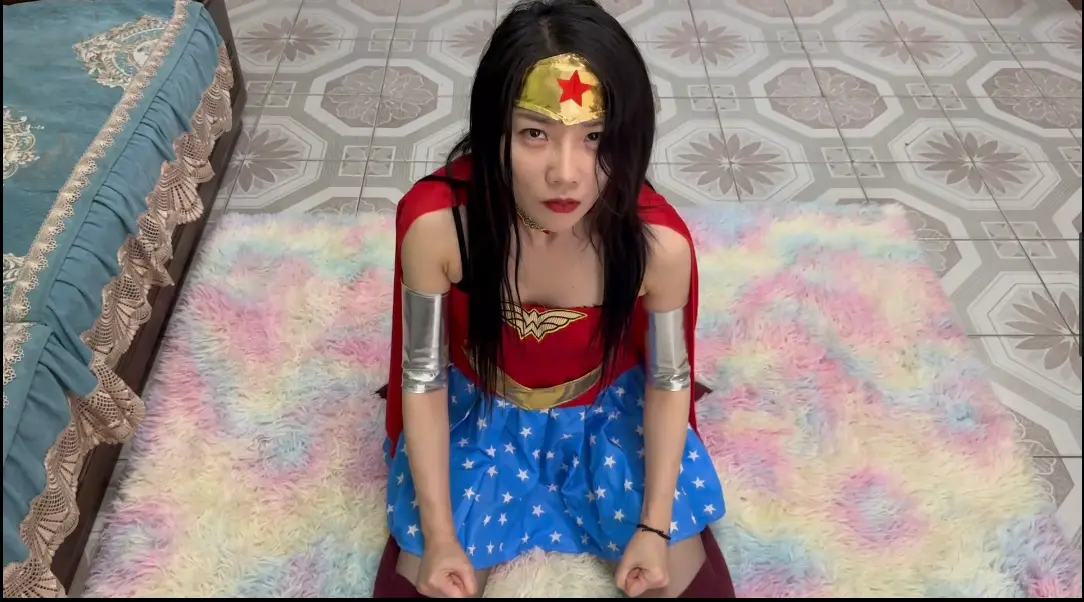 神奇女侠:可恶,你到底对她们做了什么,快把她们交出来;女反派:想见到你的姐妹们吗,神奇女侠?那你就要跪下来趴着求我,我才会考虑放过她们。