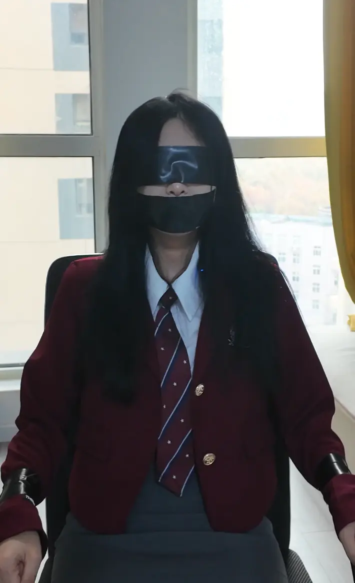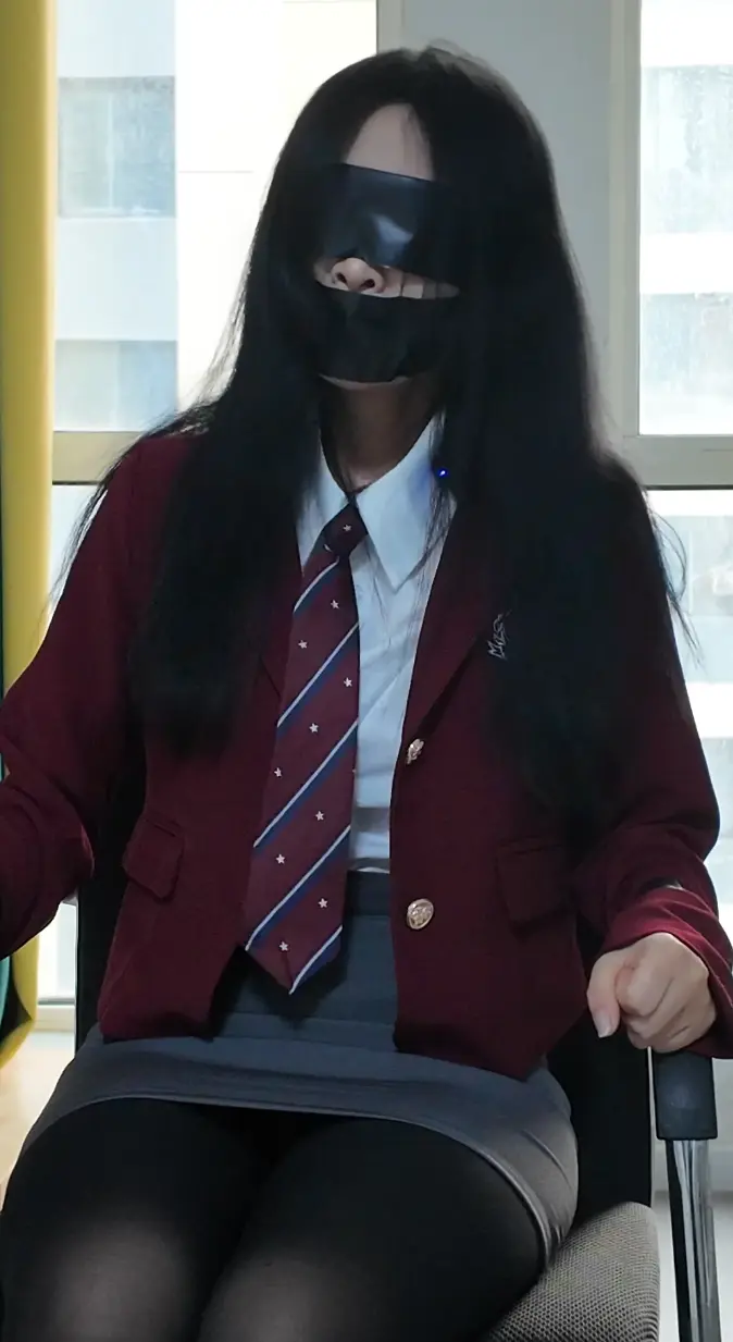 留学回来的妹妹刚搬进新家,就被尾随的坏人绑架,一身学院风制服搭配黑丝的妹妹被坏人绑在椅子上,嘴里塞着自己穿了一天内裤,再用胶带严严实实地封嘴,妹妹只能发出呜呜呜的声音,不断挣扎但是依然无法挣脱