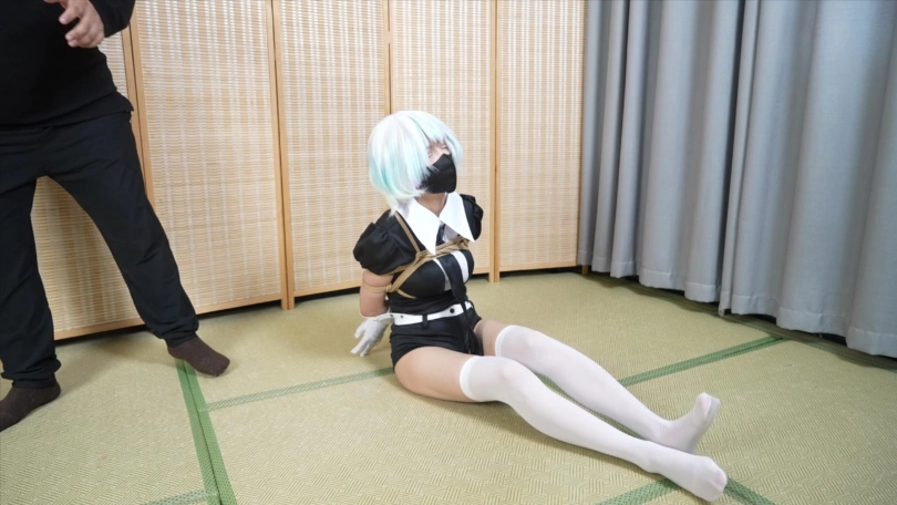 宝石之国c服:单脚吊缚+马具口球的V字驷马