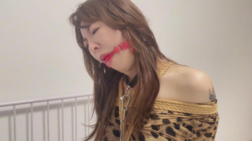 脖子也被项圈和链子连在一起,用力挣扎都会相互影响阻止挣脱!
