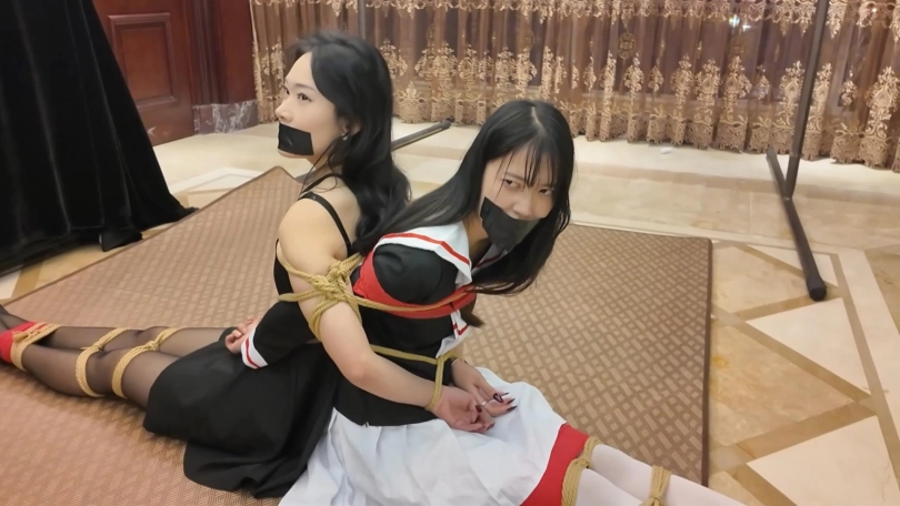 【枫叶】《残酷的绑架案》上,雪婉小智遭遇绑架,背靠背连缚高跟鞋扣脸折磨