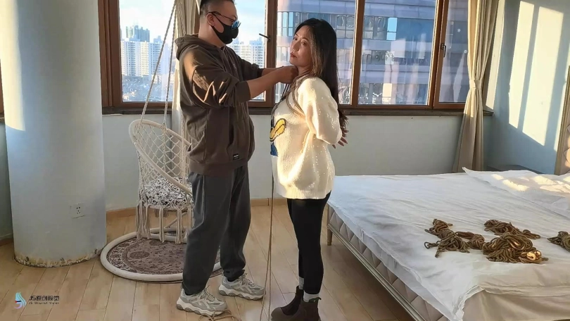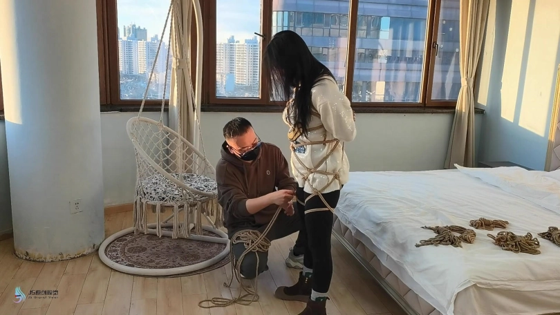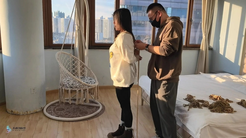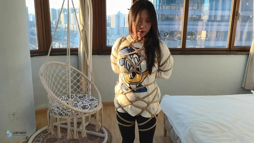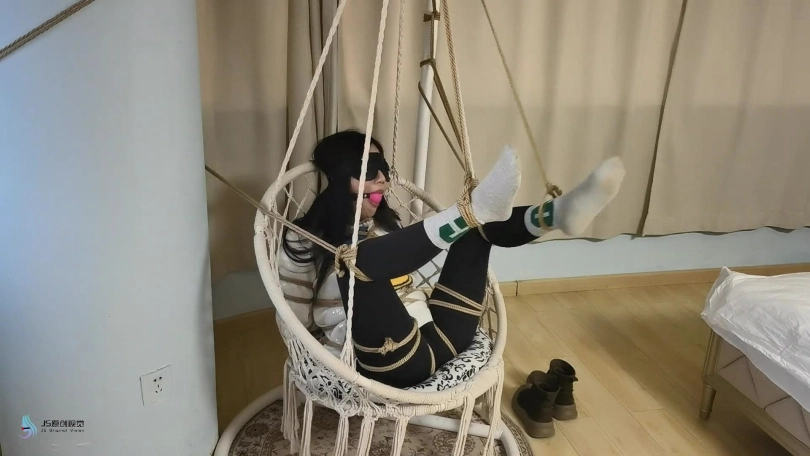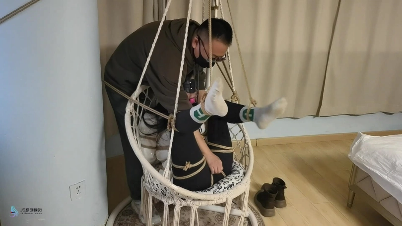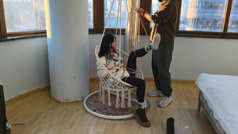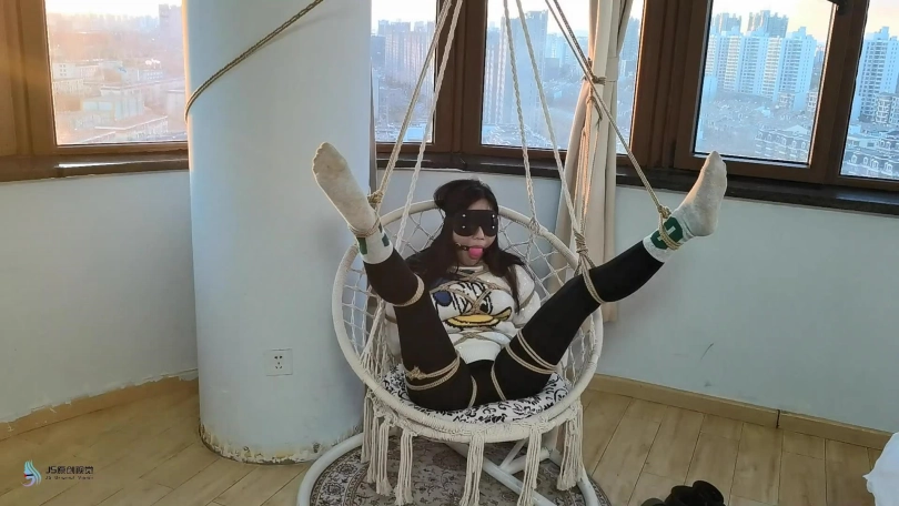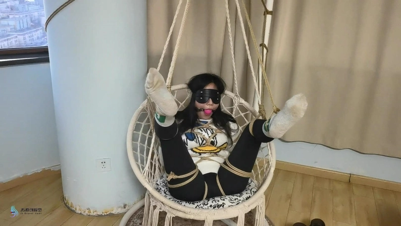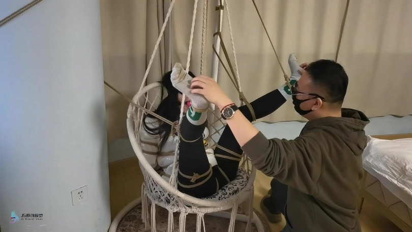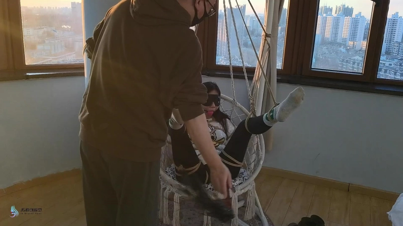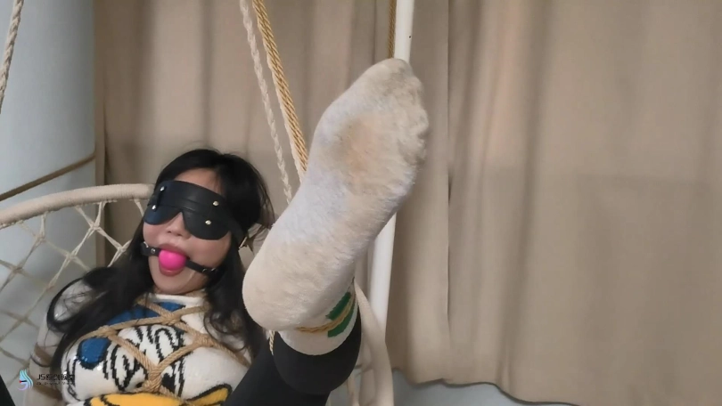 【JS】【李然】菱形吊椅分腿捆绑口球堵嘴蒙眼玩足脏棉袜