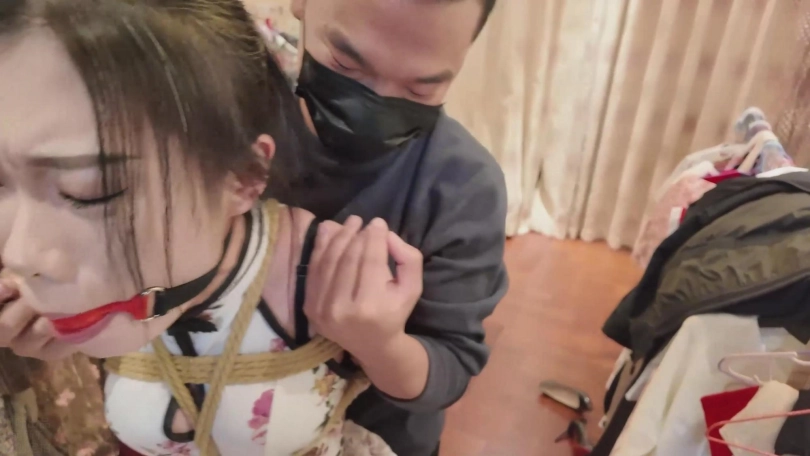静雯在卧室休息被王伟强行捆绑玩弄后,