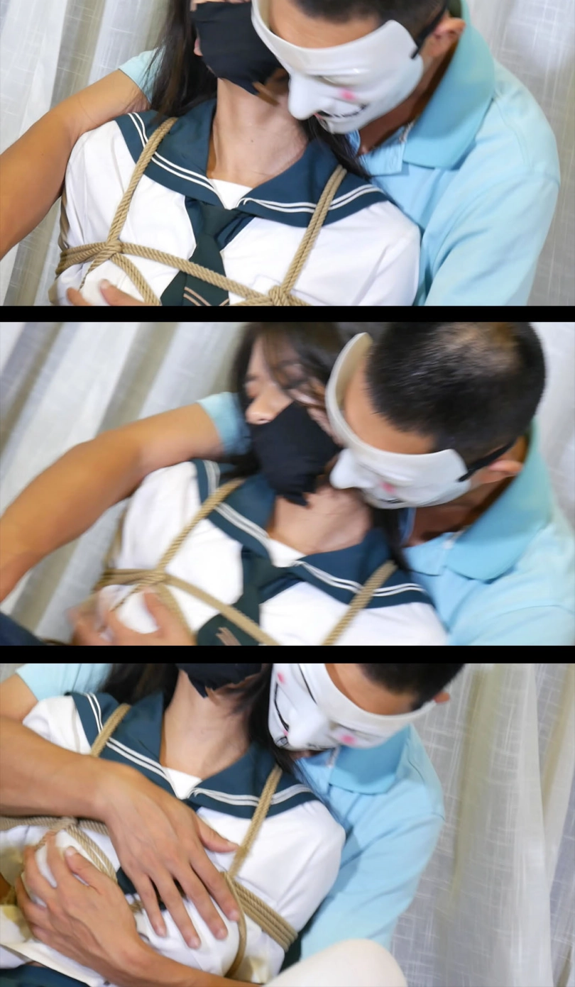 白丝水手服美女回家被歹徒迷晕,捆绑后被强制揉胸摸腿玩弄,美女无奈挣扎呻吟。。