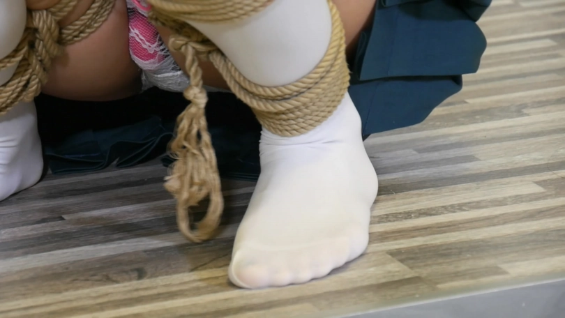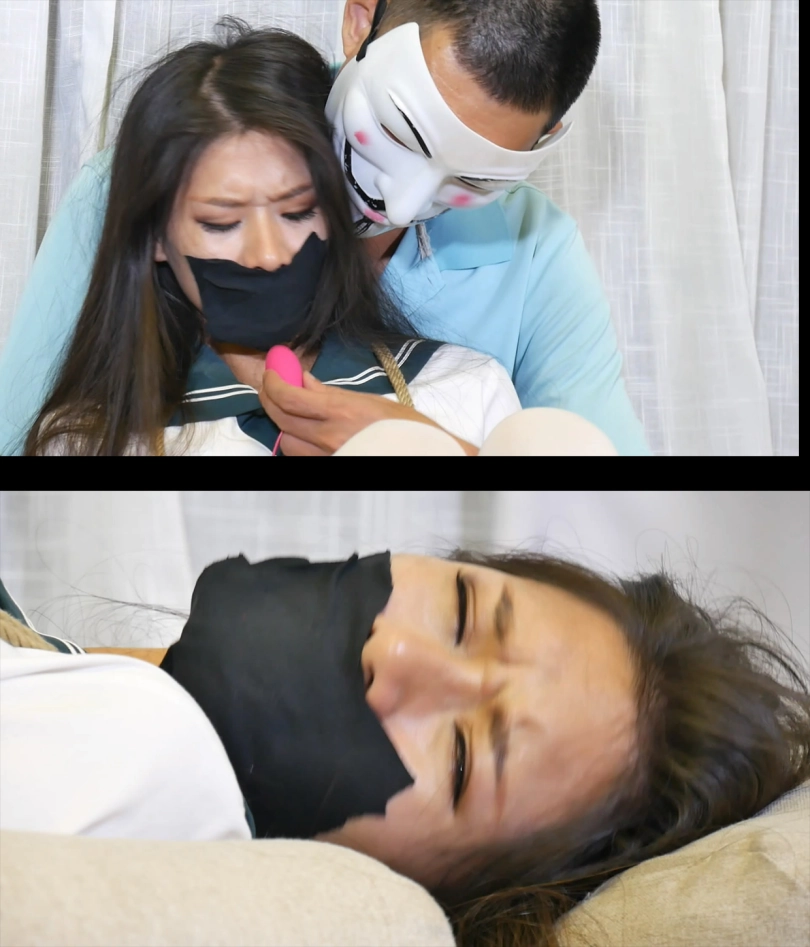 虽然歹徒离开了,但是被捆绑的美女根本无法拿出跳蛋,强烈的震动孜孜不倦的刺激着她的裆部,美女痛苦的翻来覆去。