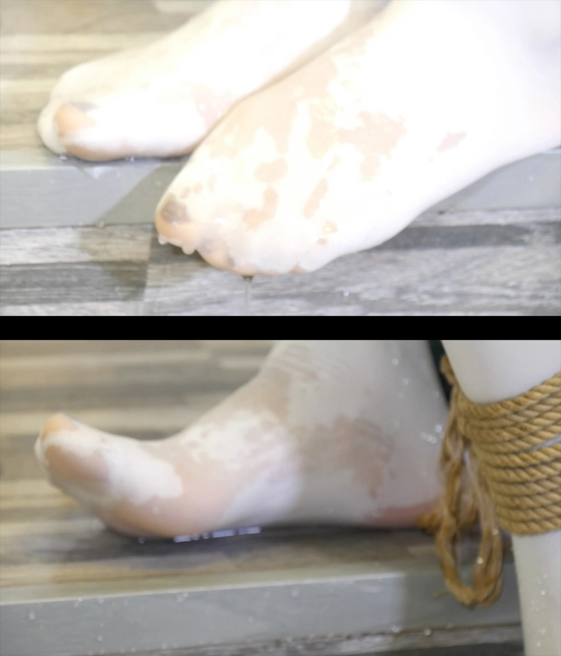 这样可不行,我得赶紧逃走才行,美女受不了这种刺激,自己必须赶紧逃走求救,但她忘了自己可是在一个大平台上,自己被折叠的白丝美腿根本不可能下台阶,急的她胡乱蹬着丝袜腿。