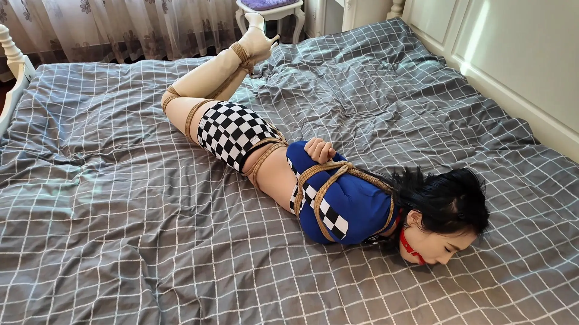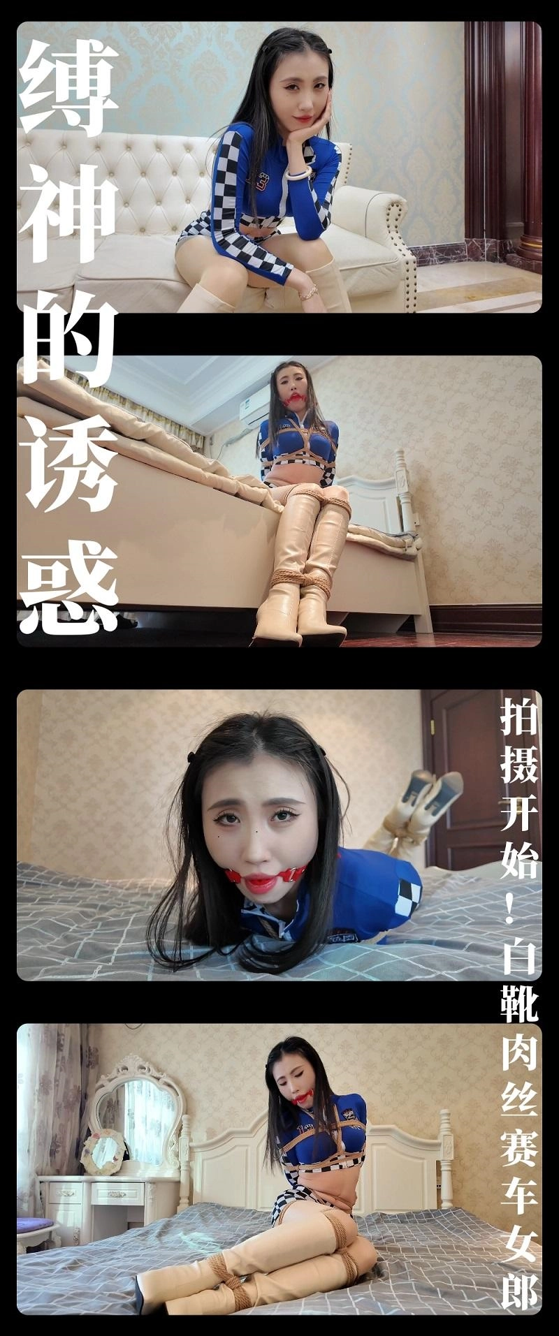 【枫叶】模特小姐姐表现力相当好!我截图都停不下来!同时也是一次大胆尝试!《缚神的诱惑·拍摄开始!白靴肉丝赛车女郎》