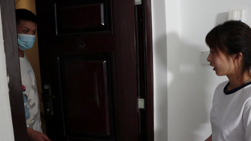 歹徒冒充修理工进入女主家。进门后女主将歹徒带到需要修理的地方后就回卧室中了。之后歹徒先假装修理水管接着从工具包里拿出刀悄悄走向在卧室中的女主趁女主不备上前从背后控制捂住女主的嘴,并用匕首劫持女主。