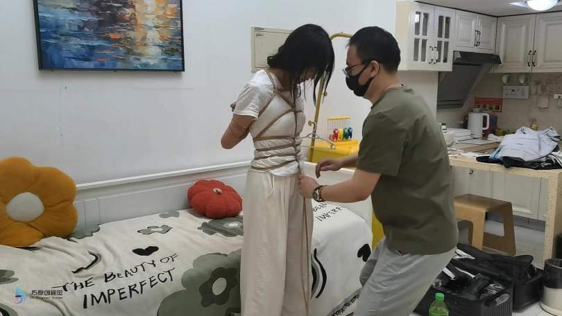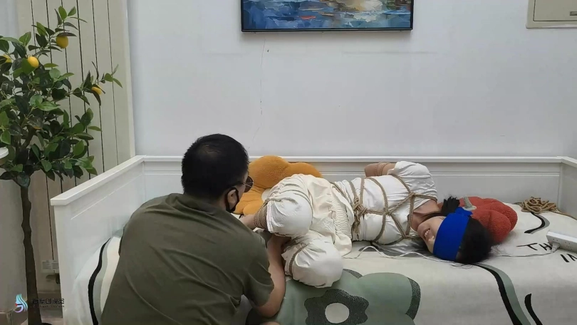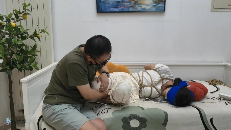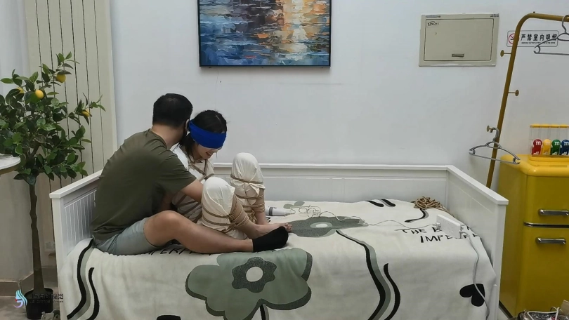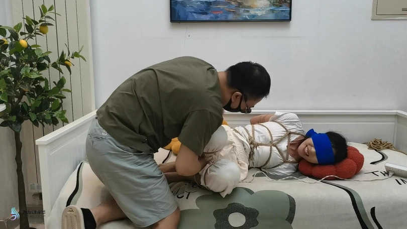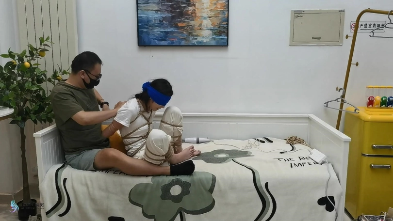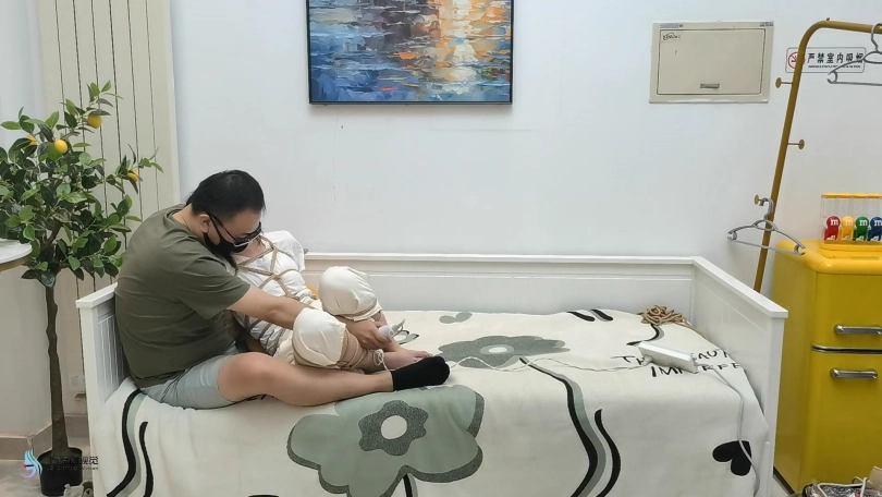 【JS】【欣妍】变种五花全身紧缚分腿束缚蒙眼裸足棒棒刺激