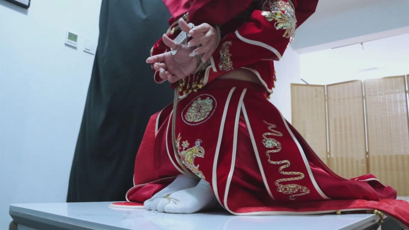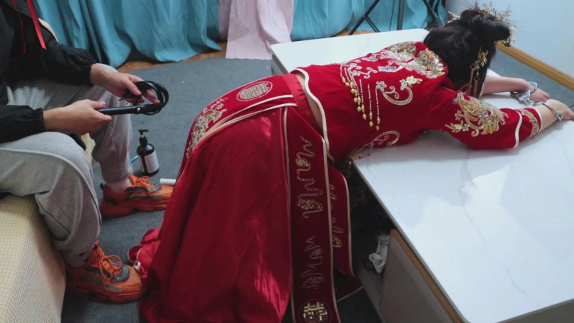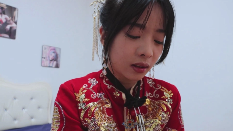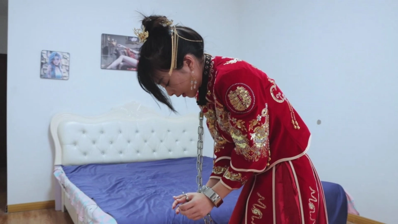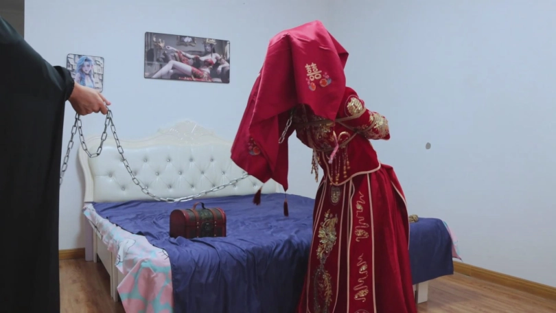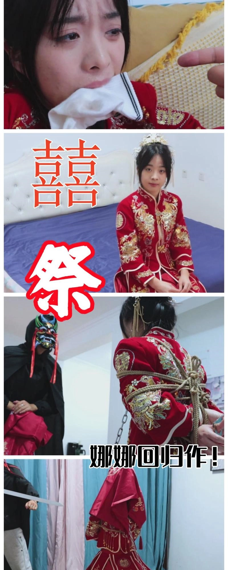 绝美的秀禾服新娘,作为祭品的她是这场盛宴的重要祭品~【娜娜回归!】【得意客】《囍祭》古风秀禾服的新娘子娜娜,被封建虚饰的囍,被镣铐锁住的祭。