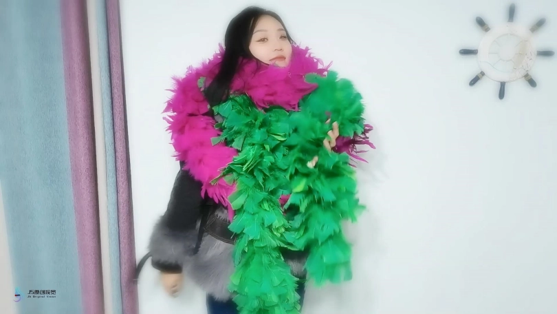 哈妮是一位著名的模特,她正在为她的大照片做准备。她与一家公司签订了一份合同,推广他们的新产品——羽毛围巾。