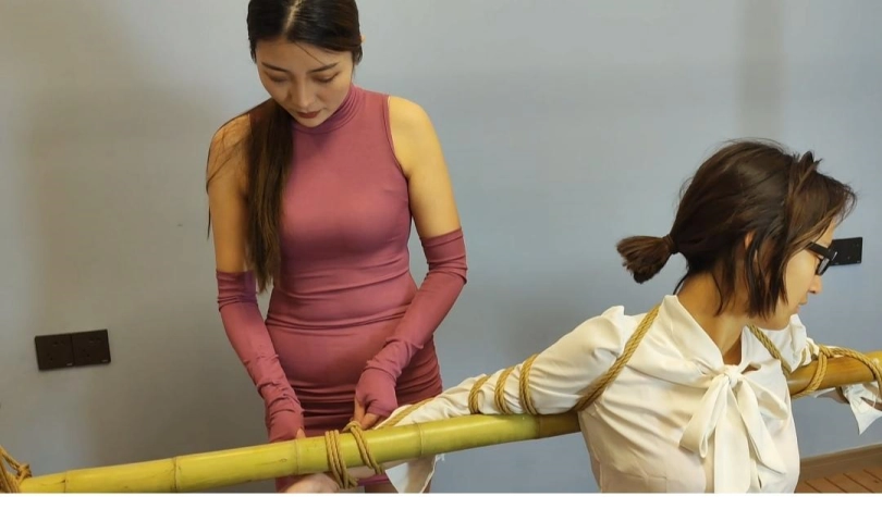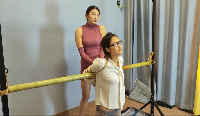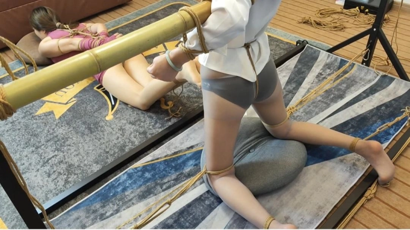 晓倩在家非常寂寞,想让佳佳捆绑玩弄她,求佳佳把她绑在竹竿上,脚趾也绑起来,股绳绑好拉动挑逗,佳佳玩弄一阵子想了一个新点子,让男朋友过来玩弄她们两个,男朋友来到就先把佳佳绑上,上下棋手抚摸,扯动佳佳的股绳,弄得佳佳娇喘练练,更不会放过已经捆绑好的晓倩,双女出镜。