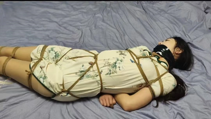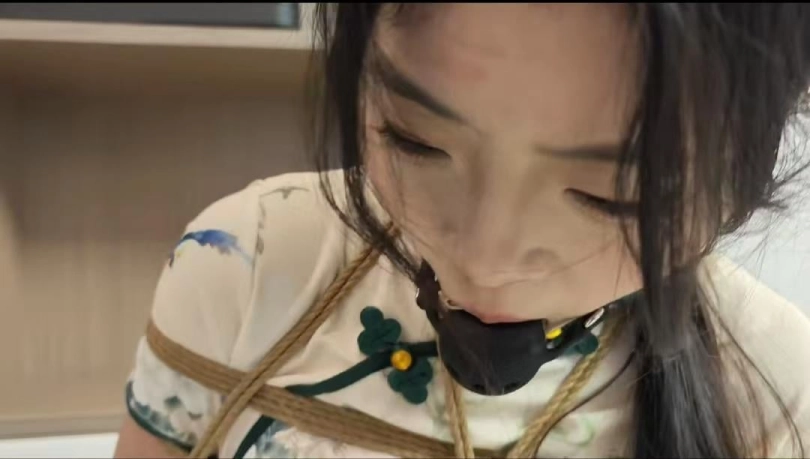小夏一身旗袍被紧紧捆绑在椅子是,逃跑未成被二次捆绑到床上堵嘴挣扎....