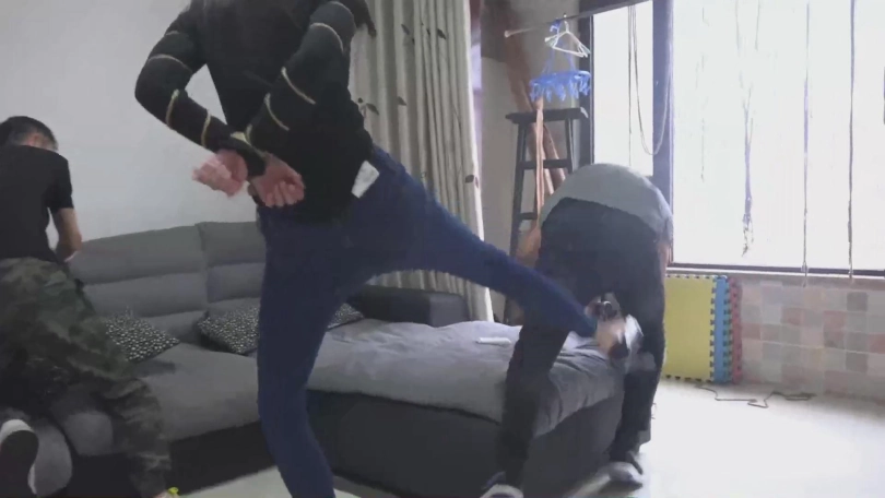 清秀美女童小萌一个人独自在家,忽然闯进两个劫匪,二人拿出绳子要捆绑小萌,小萌气愤的打了其中一个歹徒,二歹徒把小萌按倒在沙发上捆绑了起来并暴打一顿,然后到处去翻找财物,小萌趁二歹徒不备,把二歹徒分别踢倒,二歹徒气急败坏,暴打小萌。。。。。