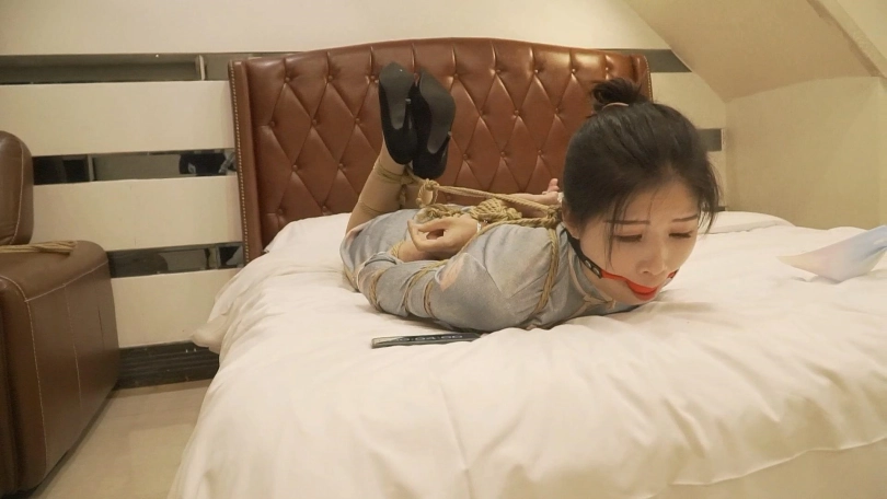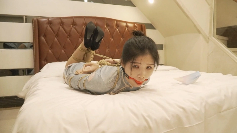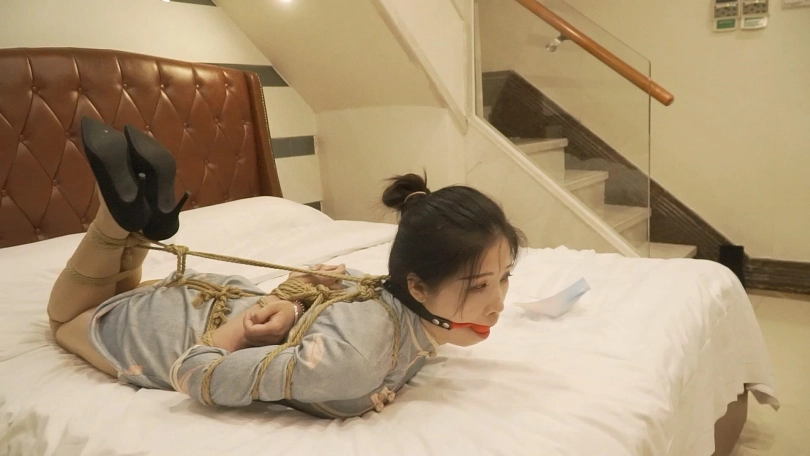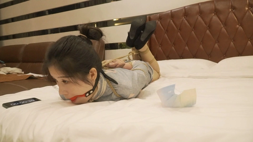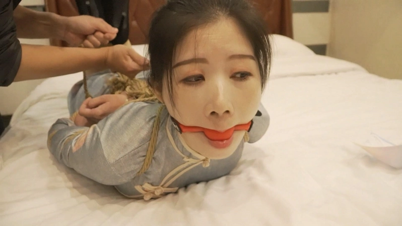在四轮惩罚中小思取得了三轮失败一轮成功的成绩,将要被五花大绑驷马放置。小思换上了一身旗袍和中式五花非常搭配,戴上口球还用绳子向后拉,事后小思说被绳子一直牵引强制抬头非常难受。