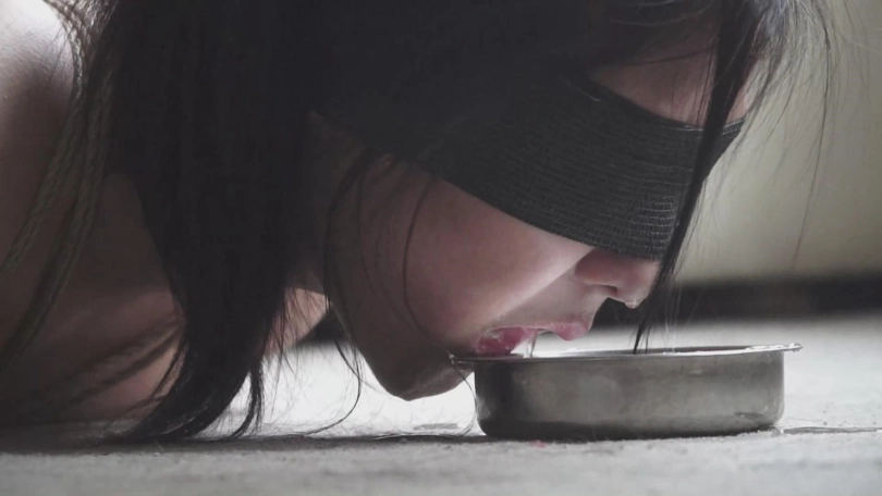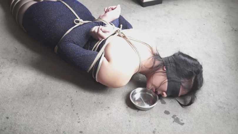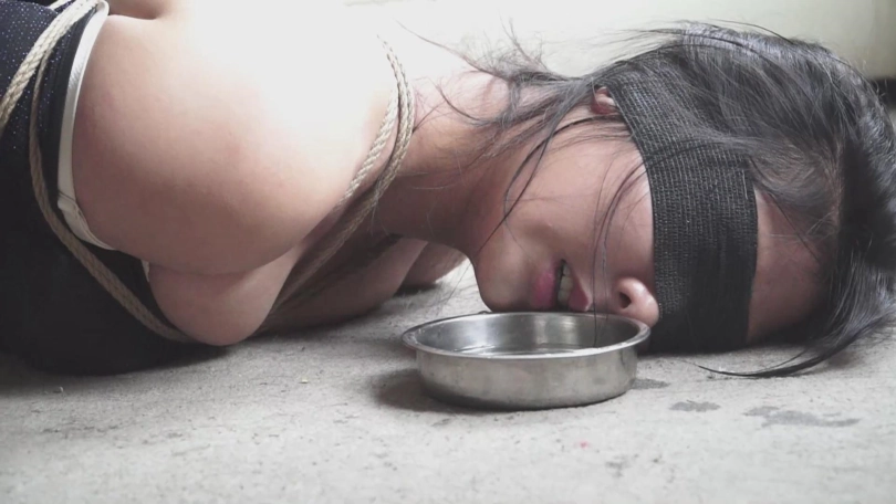 黑面人戏弄够了女孩,解开了她的嘴,女孩想要喝水。黑面人同意了,但是,不会让她喝得轻