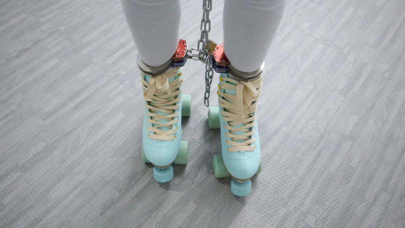 本期是个完全的新尝试,戴着镣铐木枷滑轮滑,JK白袜子,正好珊迪还练过一些轮滑,效果挺好,运动速度恰到好处,一共四个部分,镣铐、木枷、颈手铐、短脚铐!