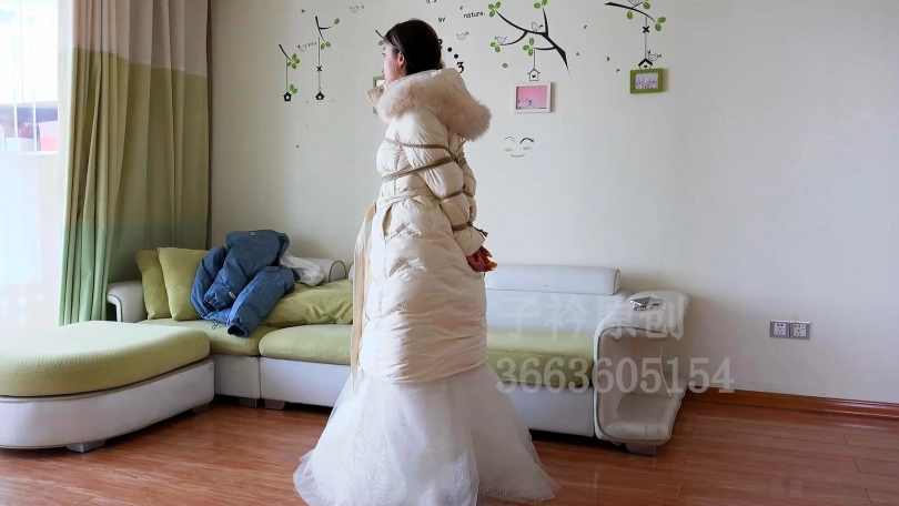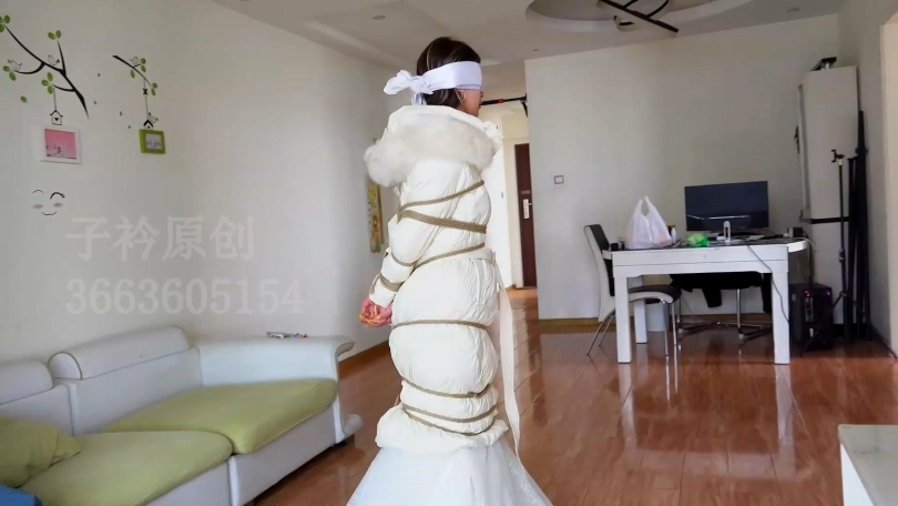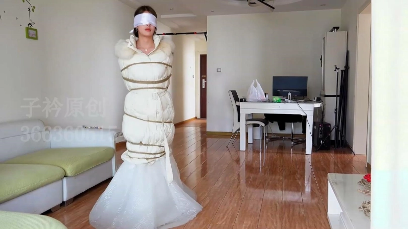 【子衿】欢欢 婚纱羽绒服捆绑丝巾蒙眼堵嘴挣扎
