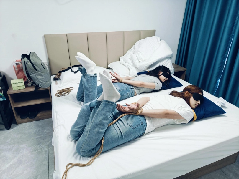 首次尝试双人姐妹花约绑,还是体育生甚至练过搏击,袜子是一早上训练过后直接来绑的,袜子比较有味道,身材都比较高,脚和脸蛋都比较美,不过脚味道比较大一点,绑起来玩脚后让她们自己互相尝试解,内容还是比较丰富,她们后续已声明会继续约绑,结束后还说挺有意思