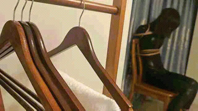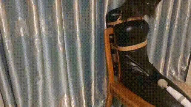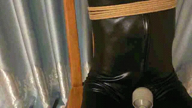 让小m穿上胶衣,再绑到凳子上,双腿绑在两边固定好,本来想让他带上头套,可小m不想,所以就没戴,可没一会小m就感觉不对劲,越来越热,没错,空调我开的热风,越挣扎越热,没一会儿就热的呼呼喘气,而且还是穿的不透气的胶衣。然后趁m不注意,拿起棒子对准双腿缝隙启动!一股强烈的震动在刺激着小m的(>_
