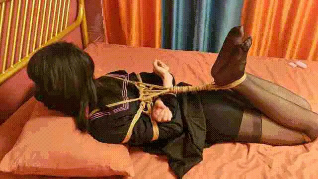 大字固定床缚挣扎与驷马放置,黑丝并腿分开,塞入震动小玩具加小棍子刺激,启动后只能无助挣扎,在刺激下很快...