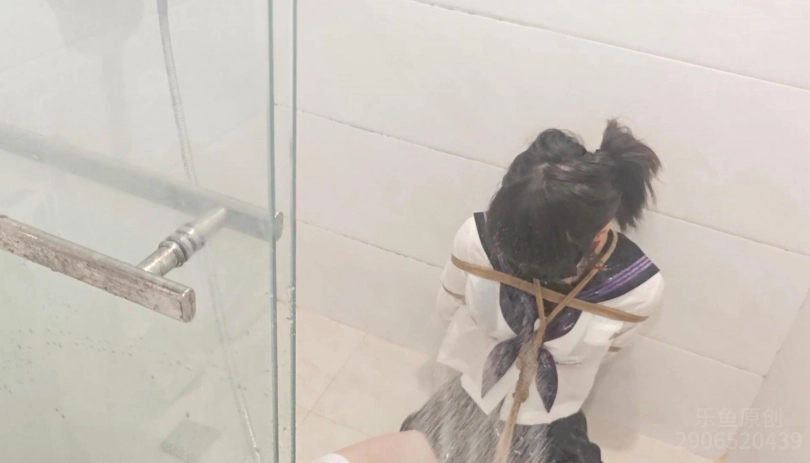 水手服 白丝 日式 湿身 把小m绑好蒙眼放在浴室,然后热水洗澡,先是用小玩具刺激了一下,再用花洒喷浴,但全身湿透后,看得出来挣扎的很难受,绳子变硬,又热又紧绷,然后再用玩具刺激,直到小m缴械后又喷浴...
