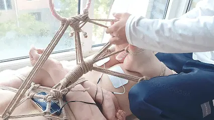 本作的露露依旧没有衣服可以穿,全裸的姿态迎接粗犷的麻绳捆绑,马具口具和[X_X]脚掌脚趾形成完美的驷马闭环,紧紧的将露露束缚固定在吊环上,任凭露露如何挣扎扭动,带来的不过是更严厉的电击和痛苦罢了。
