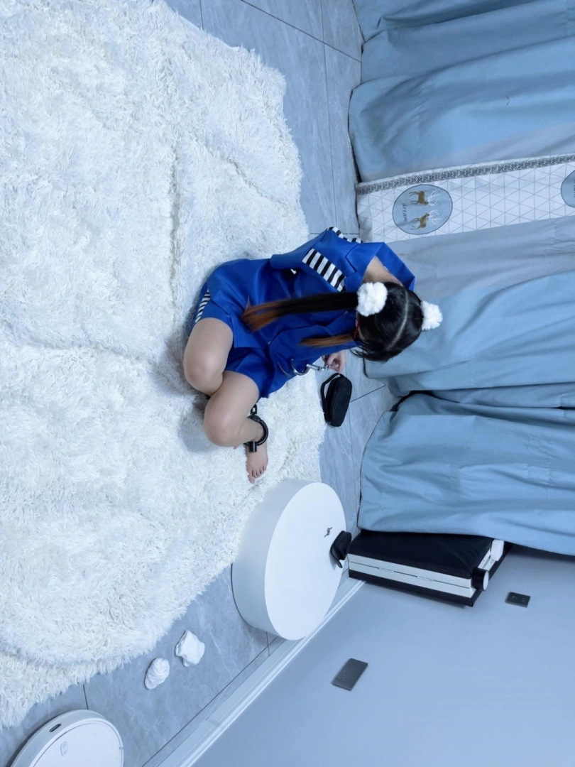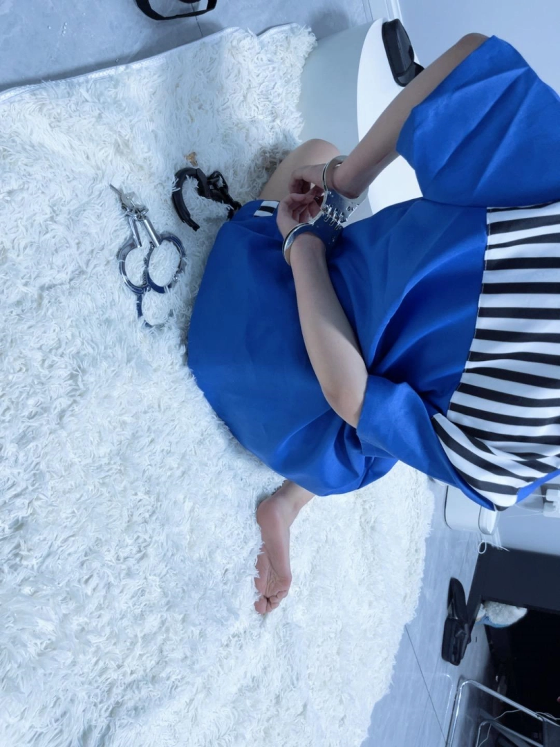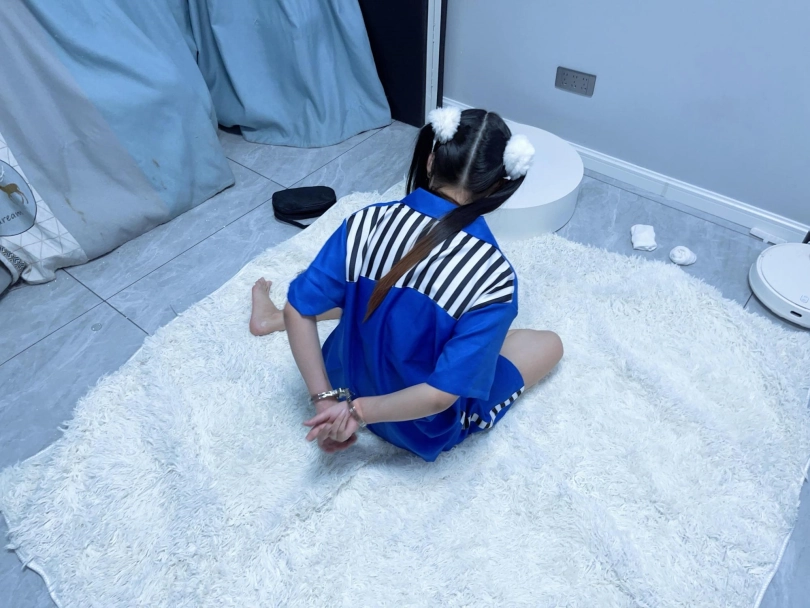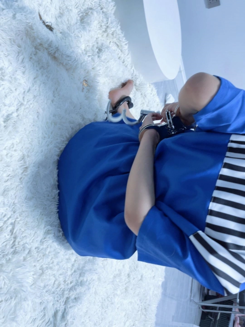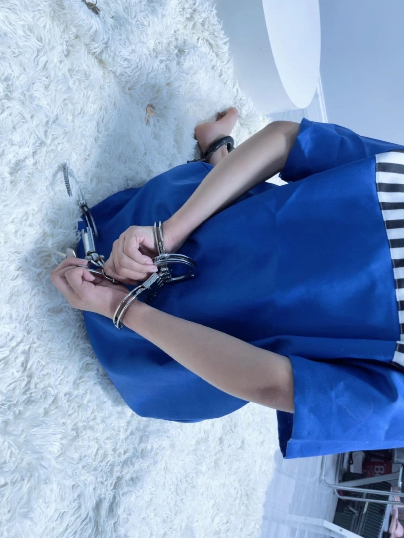 一夜过去,绑脚趾的扎带已经被糖糖挣脱开,不过手上的板铐反铐(锁眼朝上),脚上的镣铐和连接手脚的手铐还因为没有钥匙牢固的佩戴着。