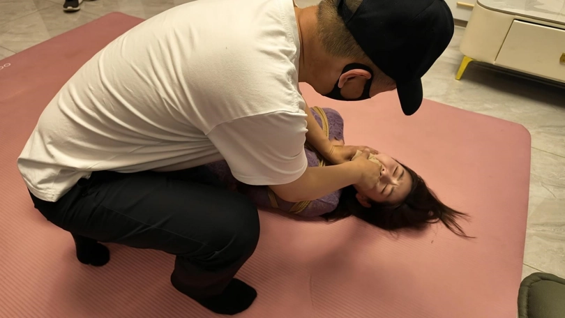 茜茜休息在家里沙发上玩手机,有人敲门,没想到被人劫持,捆绑,逼问银行卡密码,抢劫