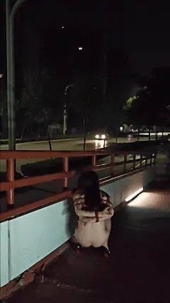 到天桥上后,成群的车流从下面涌过,露露不得不蹲下一步步挪走来躲避不被发现,在走至下桥的路上,差点被路边的电车抓个正着~此时背后也传来路人的说笑声,慌乱中的露露不得不踩着高跟鞋