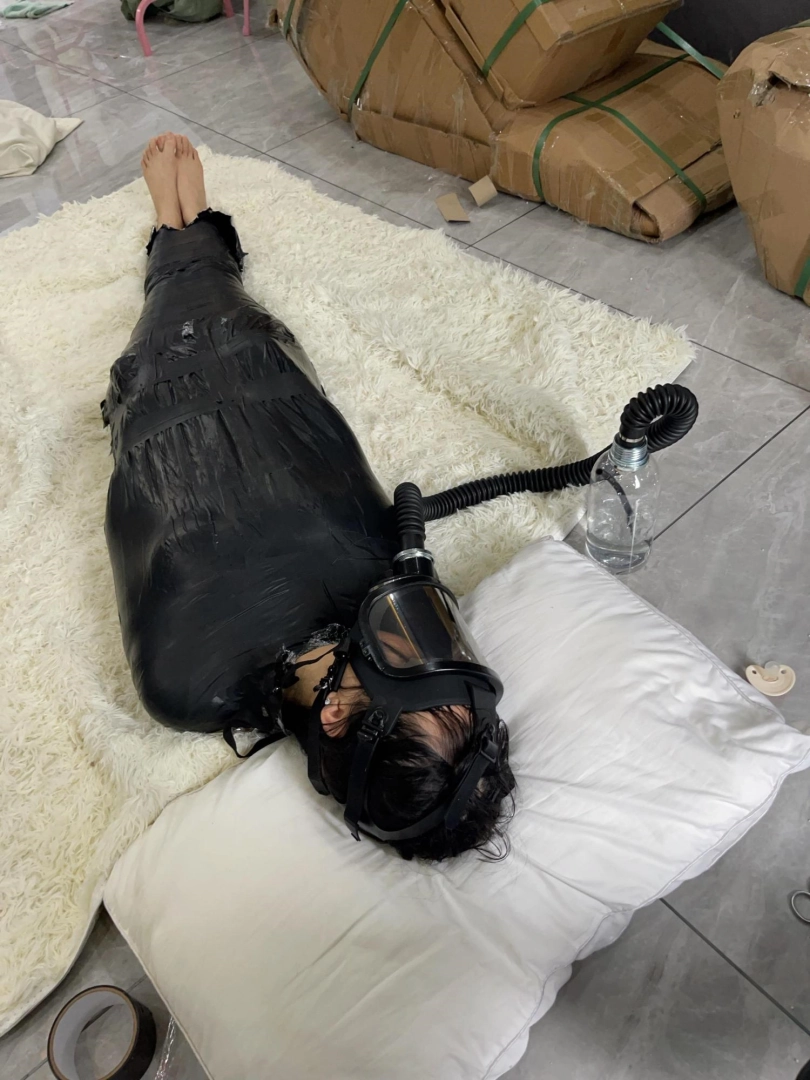 在经历三个多小时的全包后,妹子有些无聊,并且竟敢把我的全包弄破一个口。那么,是时候给她找点新乐子了:给妹子戴上防毒面具,连接呼吸管,连接负压瓶——每一次呼吸都要用力让空气冲破水压的阻碍,随着时间推移氧气会越来越少...