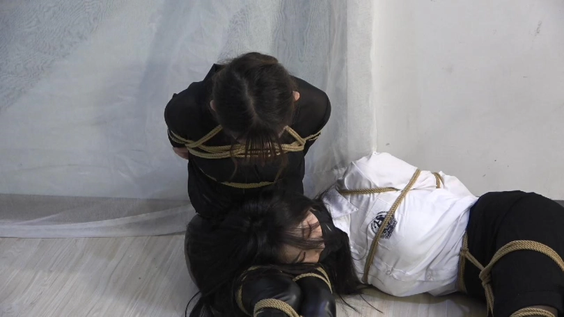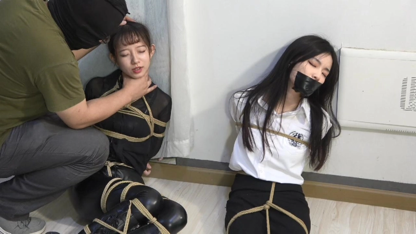 就在宋伊雪折磨花琪的时候,富豪突然从后面出现,捂住宋伊雪的口鼻,将丝袜塞进宋伊雪的嘴里,然后开始捆绑宋伊雪。