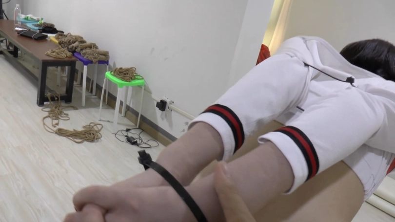 绳子绑着麻烦,扎带是效率最高的拘束,还特别紧,玲儿柔韧再好都没办法挣脱,既然这样,就只能认命被我肆意玩弄了哈。